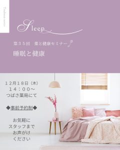 12月の薬と健康セミナーは「睡眠と健康」についてお話しいたします。