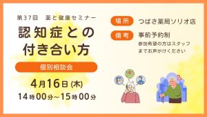 つばさ薬局では「認知症との付き合い方」についての個別相談会を実施します。